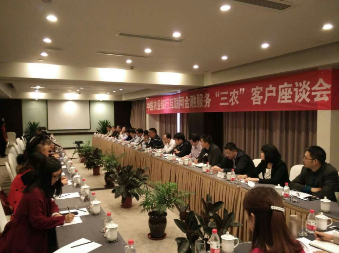 近日,中国农业银行互联网金融服务“三农”调研工作会在广汉华美达安可酒店正式举行。中国农业银行总行网络金融部李海处长、总行、省分行、德阳支行等其它相关负责同志以及德阳、广汉政府相关部门负责人、种植大户、专业合作社、县域生产加工企业、县域经销商参加了座谈。